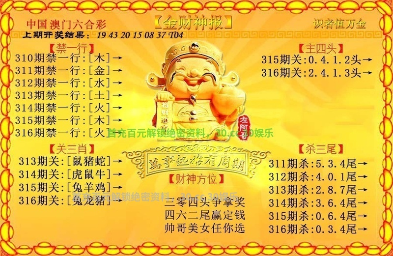 316期:七肖【蛇虎猪鼠鸡猴】开:马24中